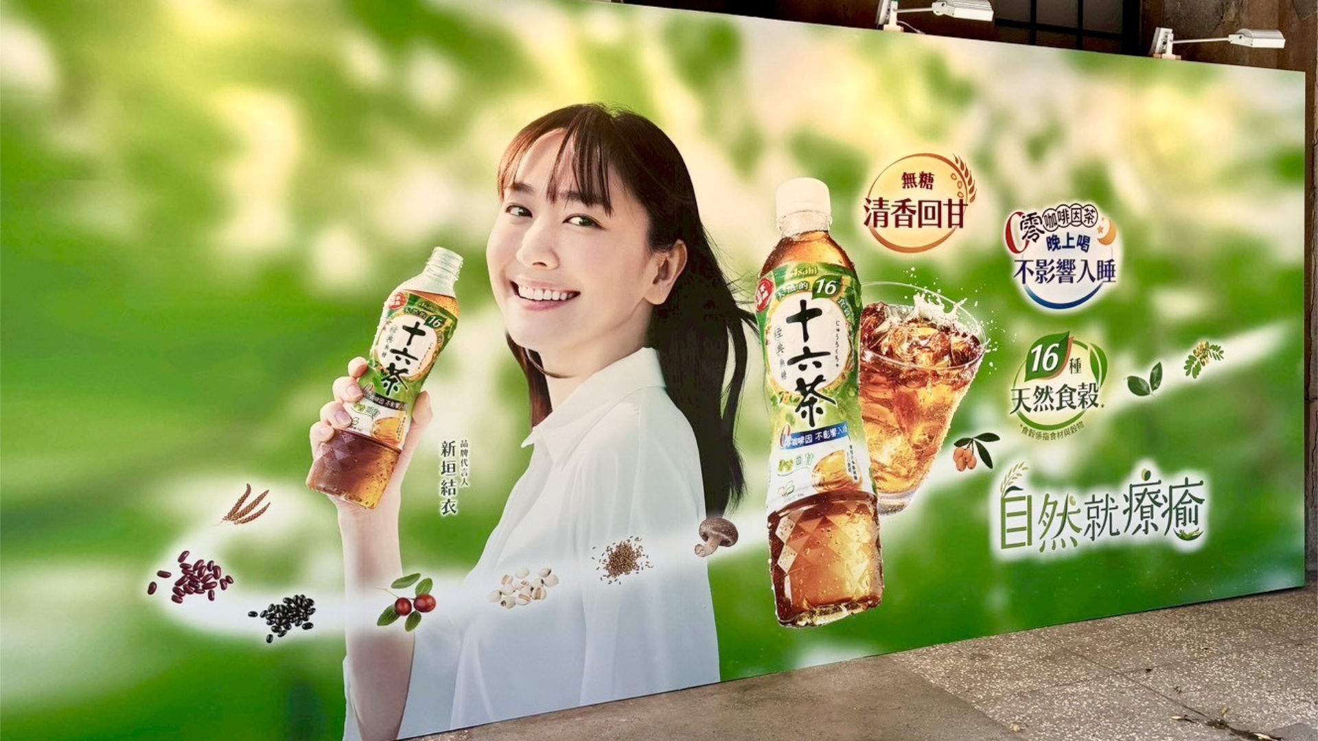 最後的茶席體驗區則邀請大家親手調製屬於自己的「十六茶」,也可選擇限定配方,坐下細品約十六分鐘的「療癒時光」;在結束體驗前,還能與代言人新垣結衣的看板合影留念。
