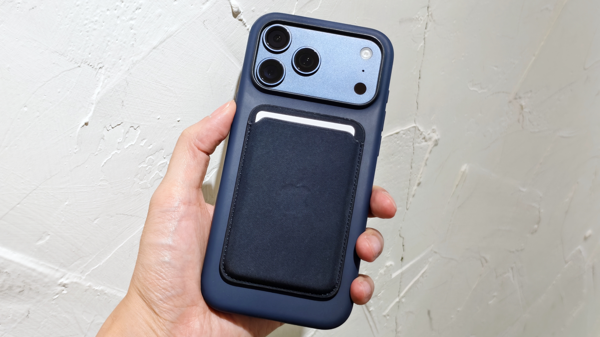 同場加映 iPhone 17 Pro Max 原廠 MagSafe 矽膠保護殼與 MagSafe 精細織紋卡套;與過去一樣,原廠矽膠殼內部有類似絨布的材質保護機身,而卡套支援「尋找」功能。