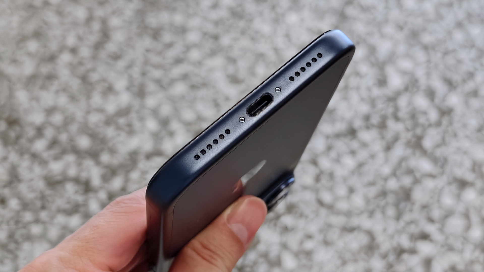 底部有 USB-C 傳輸埠、揚聲器與麥克風收音孔。