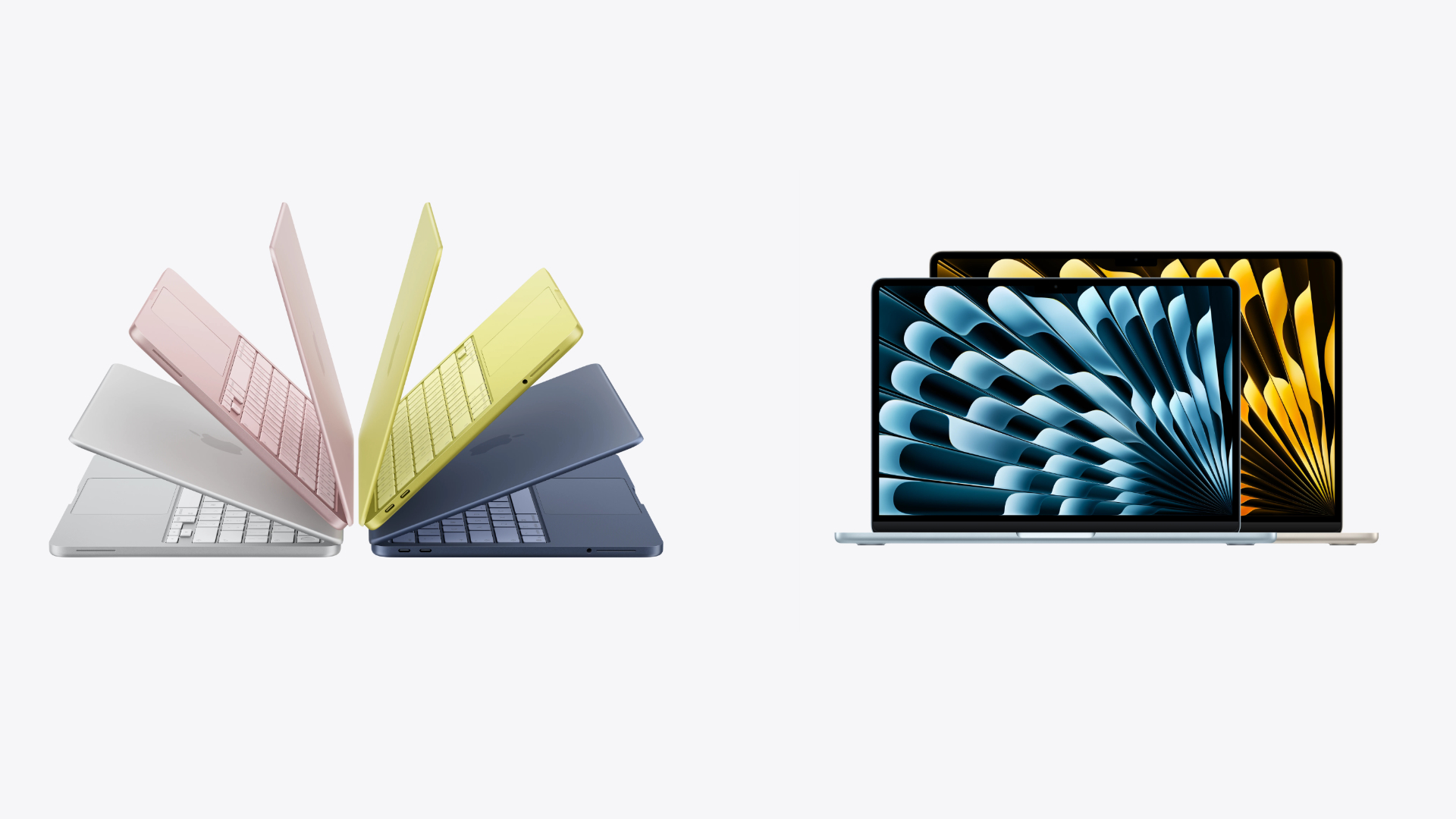 在色彩選擇上,MacBook Neo 採取了較為活潑、高飽和度的配色策略,提供銀色、胭粉色、青橘黃色以及靛青色等四款外觀,且機身底部的腳墊與鍵盤皆採用與機身同色系的設計,而 MacBook Air 則維持較為內斂的專業風格,提供天藍色、午夜色、星光色與銀色。
