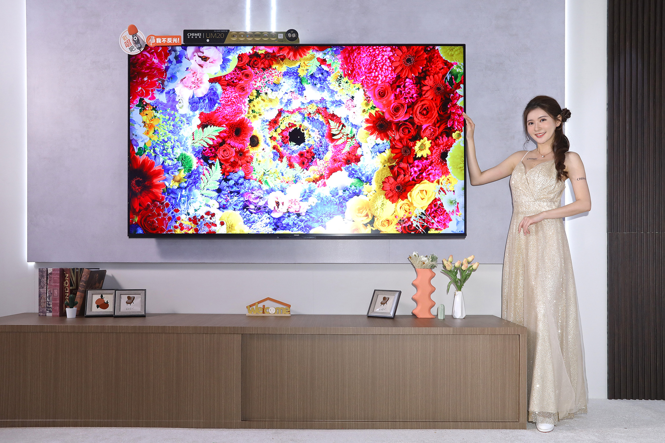 在旗艦機種方面,奇美推出的 UM20 系列大 4K Mini QLED 顯示器,這款機型結合了 Mini LED 的高區域控光與 QLED 量子點顯色技術,並透過 AI 演算法即時分析畫面的亮暗、對比與膚色細節,藉此提升影像的立體感與純淨度;為了解決大尺寸螢幕常見的反光問題,65 型以上的機種特別採用了霧面抗反光面板,有效提升觀看的舒適度。