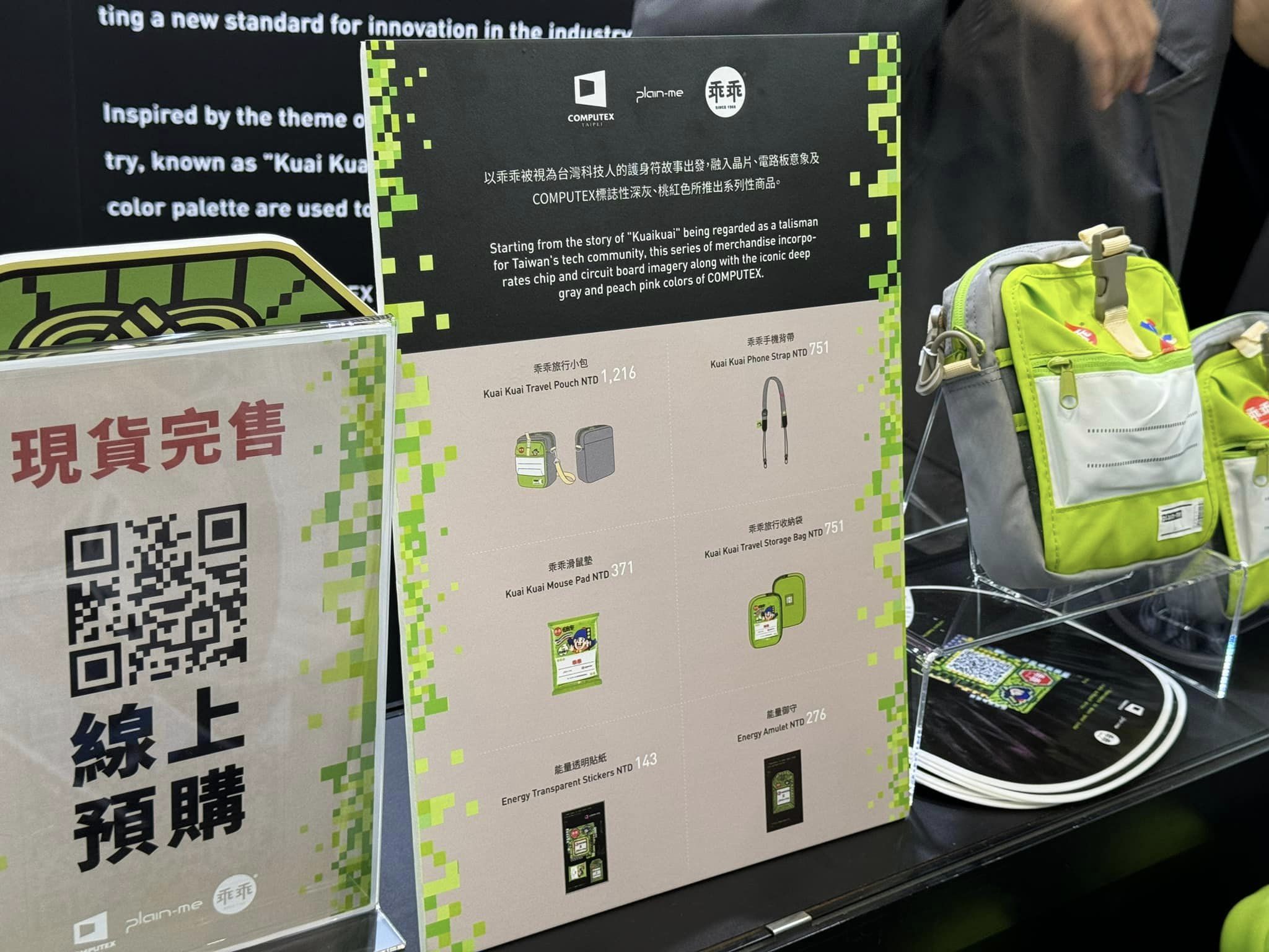 COMPUTEX x 乖乖 x plain-me 採用乖乖綠配色的聯名限量商品包含 COMPUTEX 聯名能量御守磁鐵、COMPUTEX 聯名乖乖滑鼠墊、COMPUTEX 聯名乖乖旅行小包、COMPUTEX 聯名乖乖手機背帶、COMPUTEX 聯名能量透明貼紙、COMPUTEX 聯名乖乖旅行收納袋,部份產品在國際電腦展展場上架第一天就銷售一空,plain-me 有另外於官網加開預購,預計 2024 年 7 月 31 日出貨。