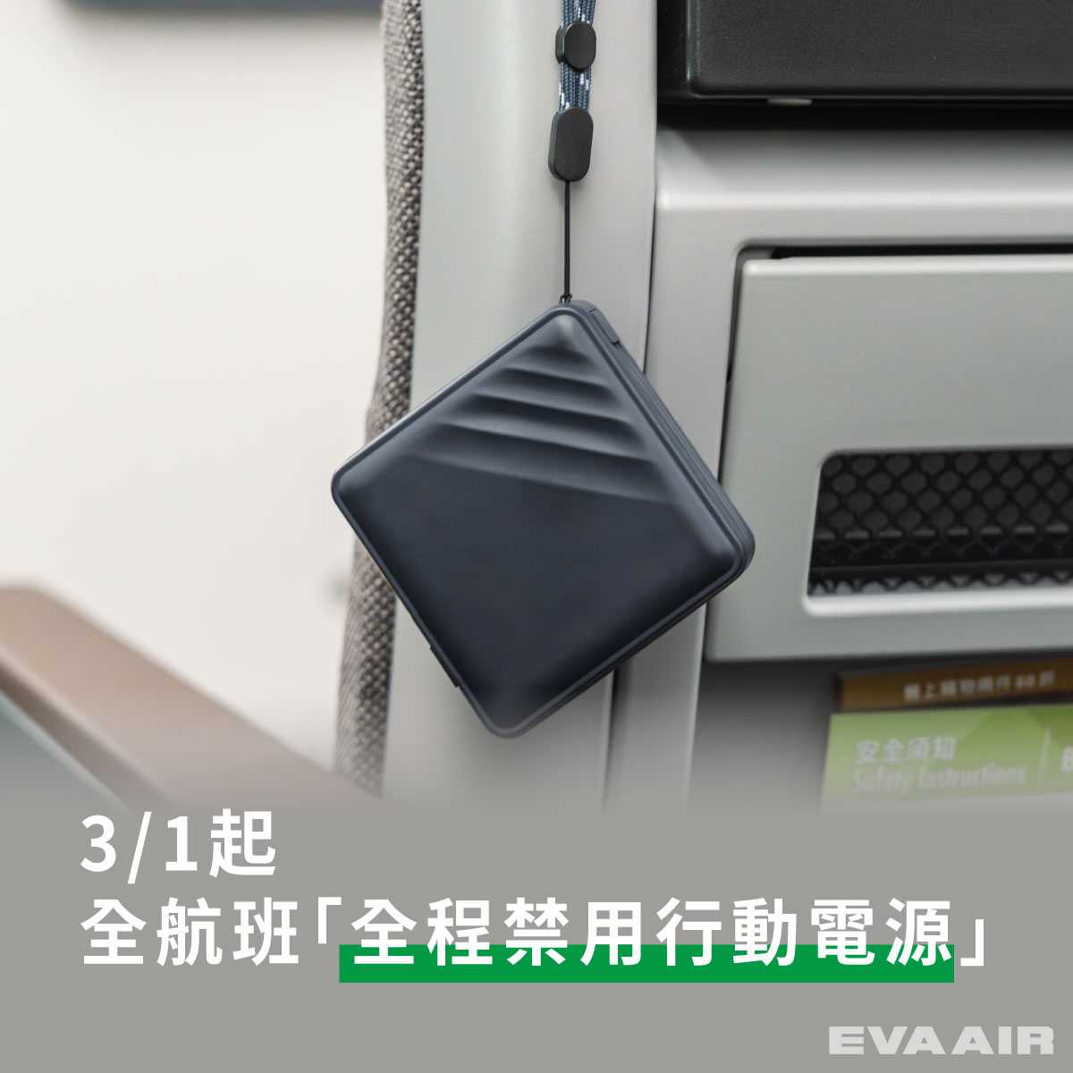 稍早長榮航空宣布跟進,將自台灣時間 2025 年 3 月 1 日起,全程禁止於航程中使用行動電源及備用鋰電池充電;若有使用電源需求,建議在登機前先將設備充滿電量,且長榮多數機型座椅都有提供 AC 插座及 USB(Type A)充電孔可以滿足旅客用電需求。