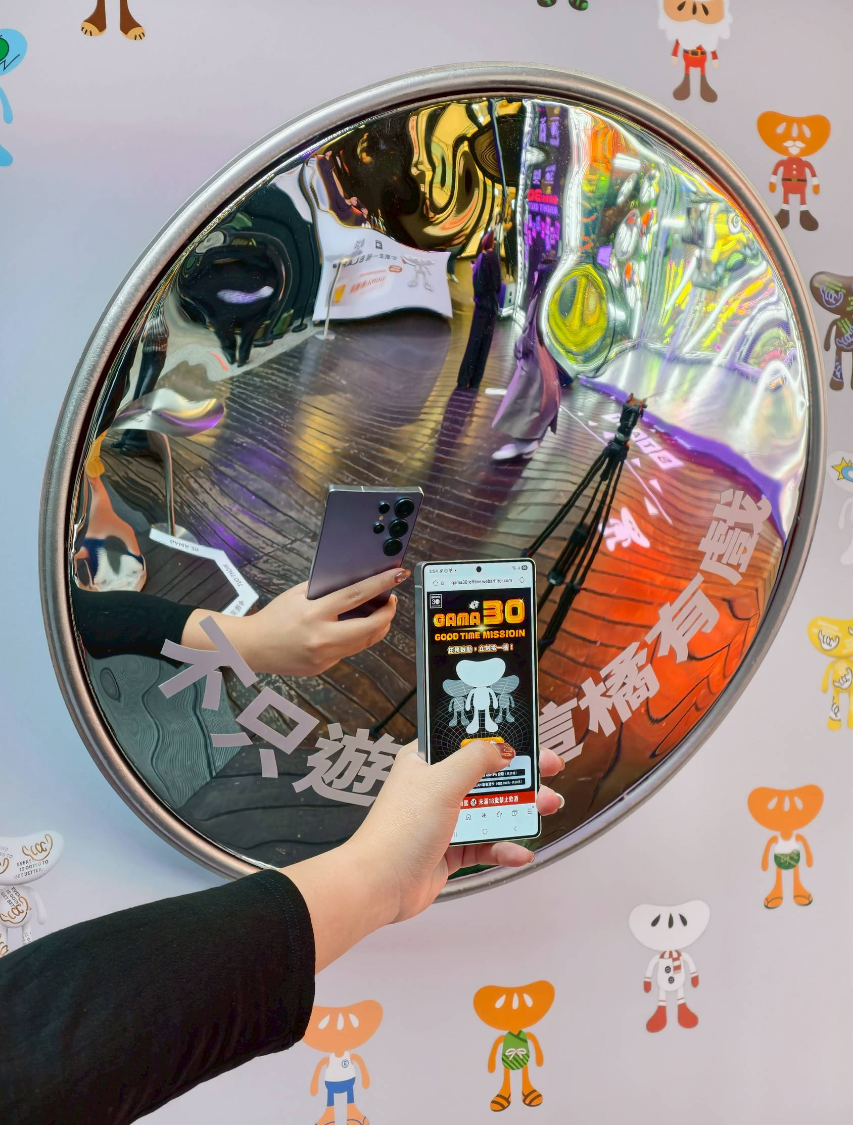 展區以跨螢幕影像、沉浸式聲光與復古風格裝置呈現橘子的發展歷程,其中「復古凸面鏡」拍照點與 Y2K 風格「飛炫拍貼機」是現場討論度最高的兩個設計;拍貼機結合橘子旗下遊戲 IP 框、塗鴉、貼紙功能,也能完成任務領取 BLAH BLAH Bar 折扣券(儲值滿 500 元可折抵 100 元,數量有限)。