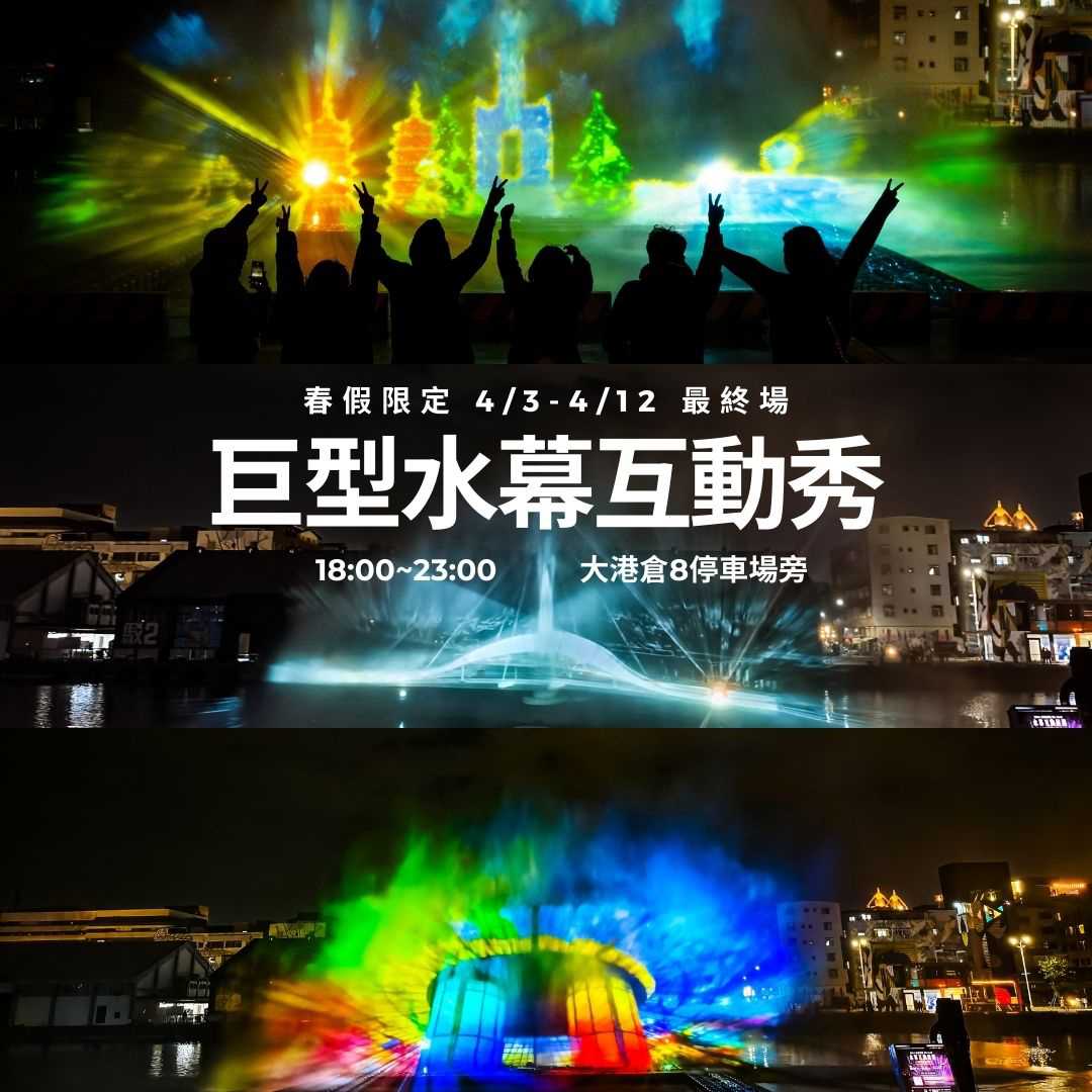 同場加眏!高雄港區於春假期間限定演出「5G 水幕互動投影秀」,結合 5G 技術,打造前所未有的光影體驗!活動時間為 4 月 3 日(四)– 4 月 12 日(六)18:00 – 23:00),邀請遊客夜遊港區,感受 科技 × 藝術的極致視覺饗宴。