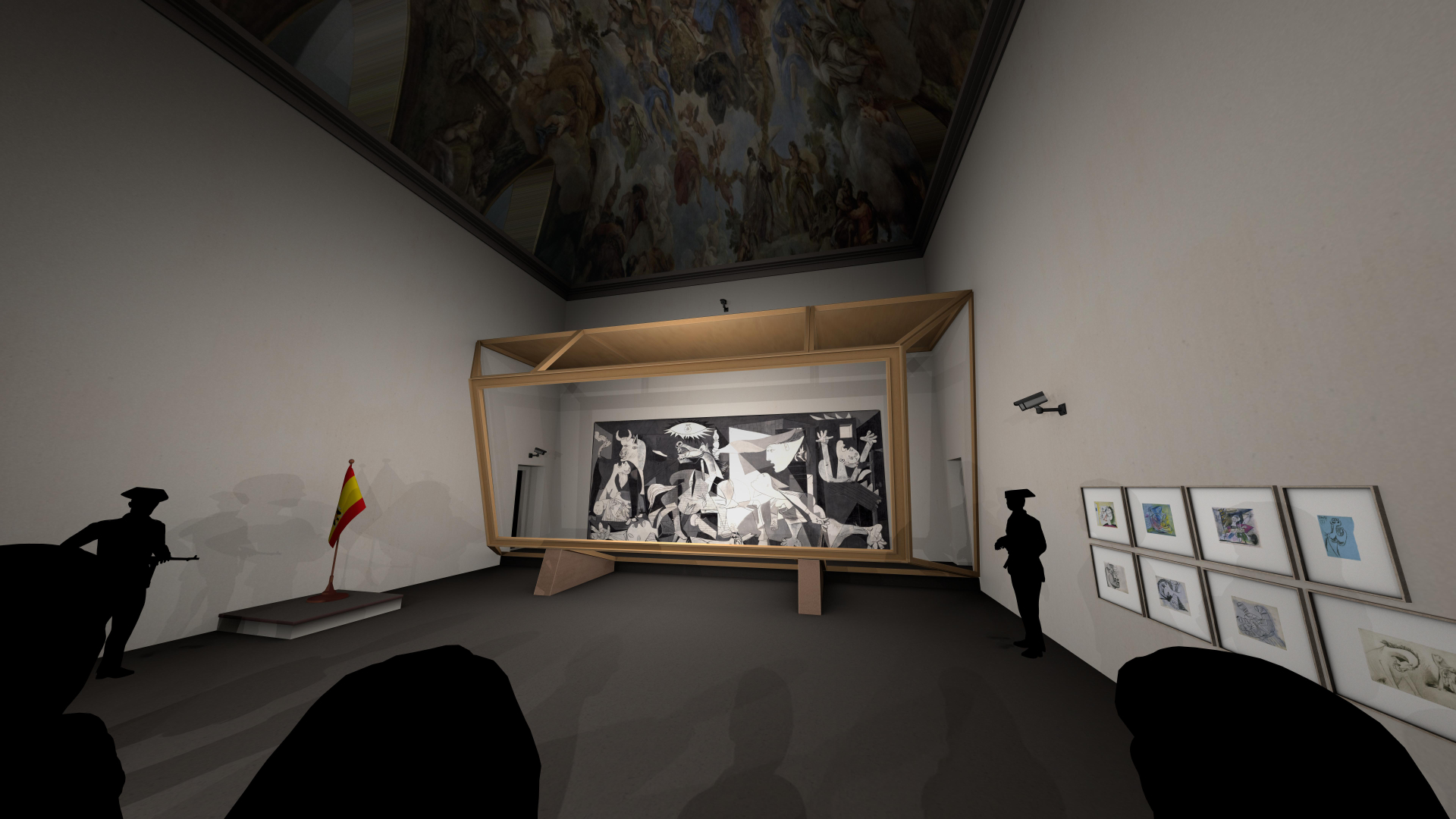 這部長約 15 分鐘的 XR 體驗,以館方的歷史檔案與深度研究為基石,精準重建了多個與畫作息息相關的歷史場景,觀者將能透過虛擬實境,重返啟發這幅畫作的巴斯克小鎮格爾尼卡轟炸現場、畢卡索當年位於巴黎 Grands-Augustins 的創作工作室,以及畫作首度面世的 1937 年巴黎世界博覽會西班牙共和國館;此外,作品也梳理了《格爾尼卡》在戰後輾轉於世界各地,最終落腳於馬德里索菲亞王后國家藝術中心博物館的流轉歷程,展現其如何從單純回應戰爭創傷的畫作,昇華為全球共有的反戰和平符號。