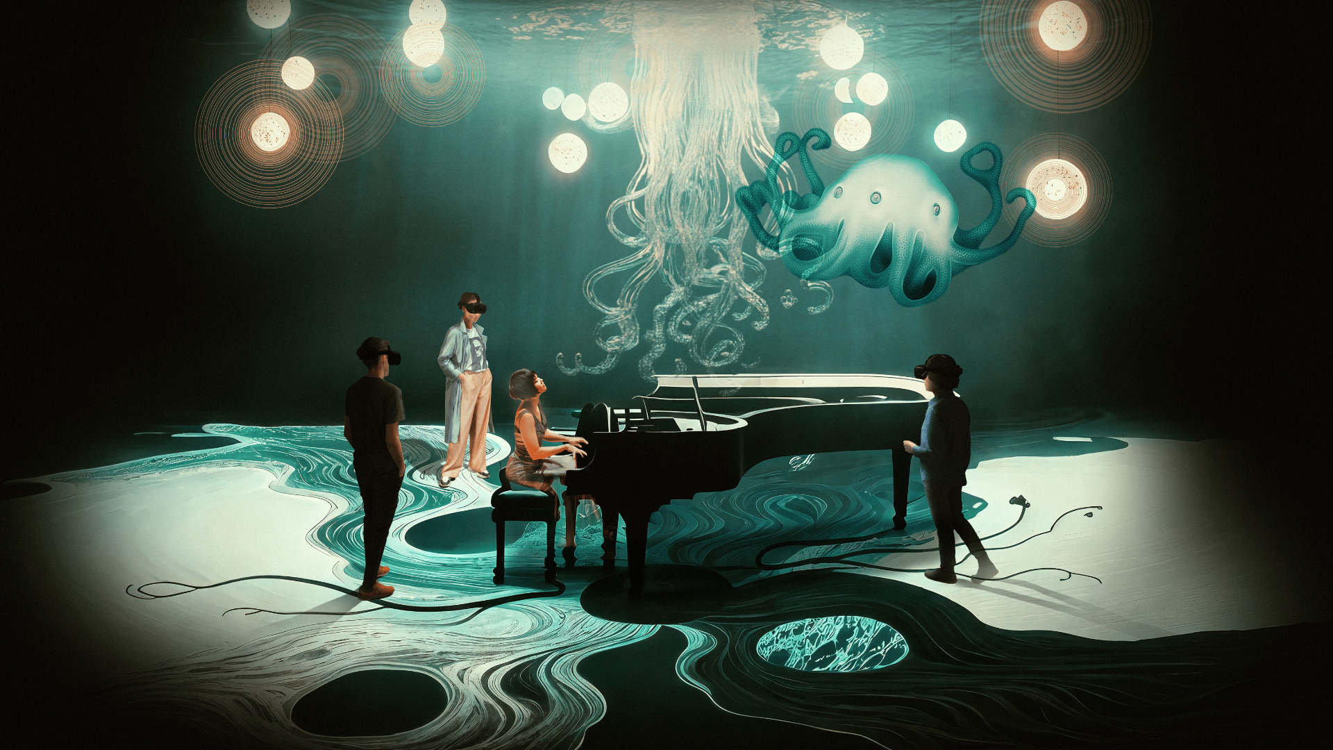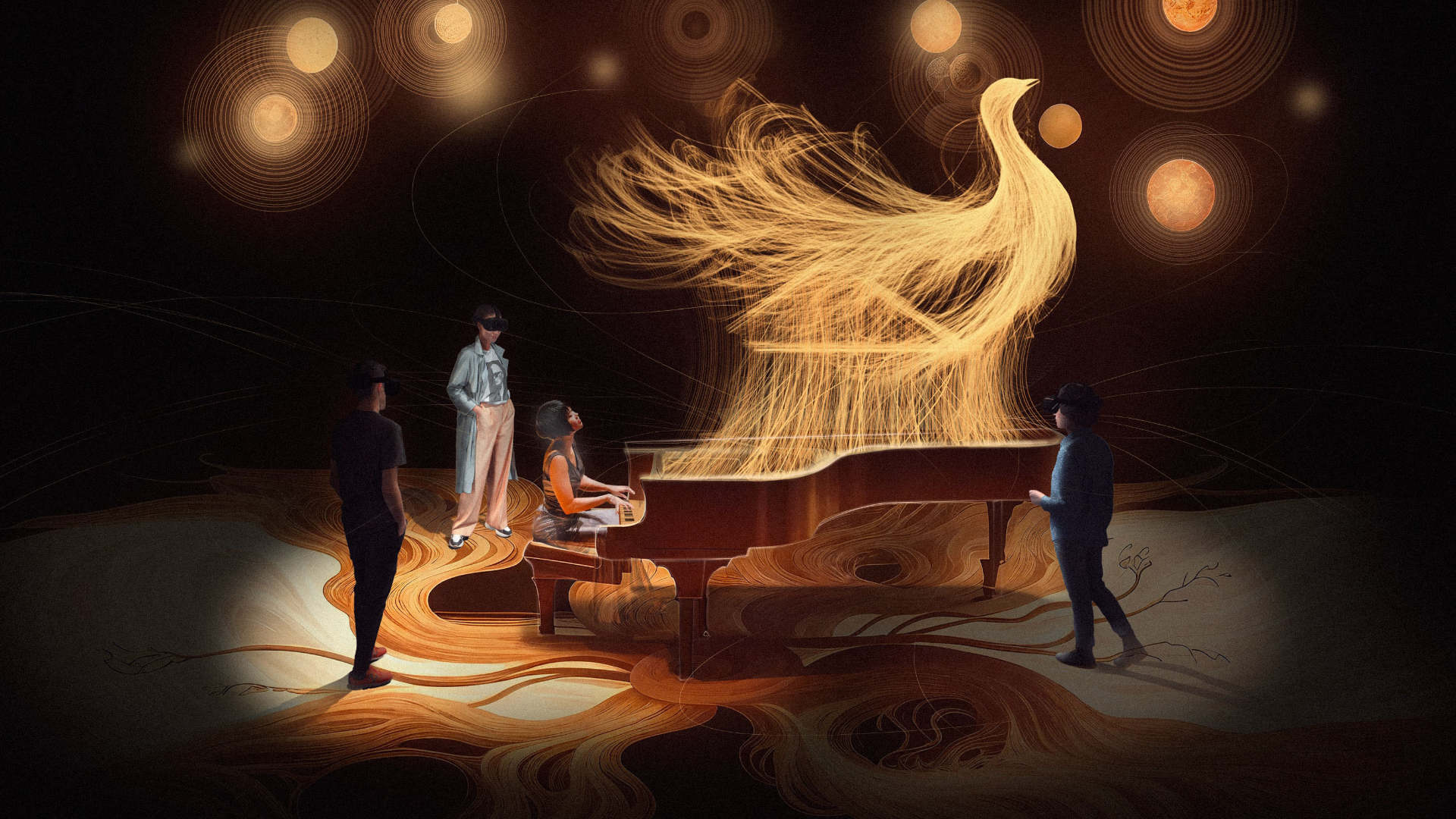 作為一場多人互動(multi-user)的大場域實景娛樂體驗(Location-Based Entertainment ; LBE),展現 HTC 在沉浸式媒介技術的領先實力。觀眾將配戴 HTC VIVE Focus Vision 頭戴裝置,在真實與虛擬交錯的空間中自由探索,近距離感受世界級鋼琴家 王羽佳(Yuja Wang)的演奏與情感。