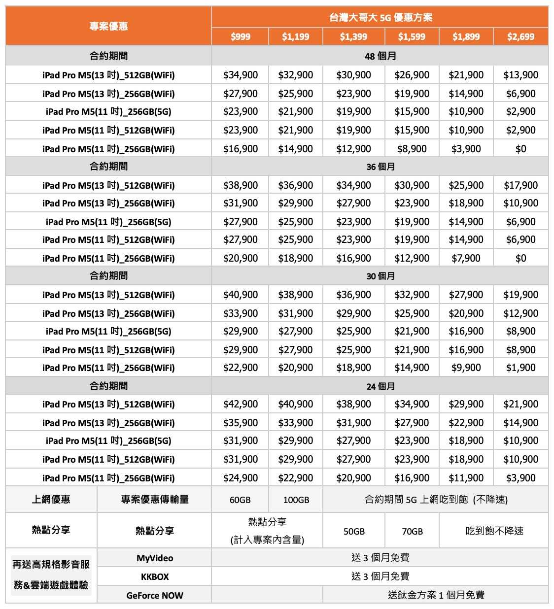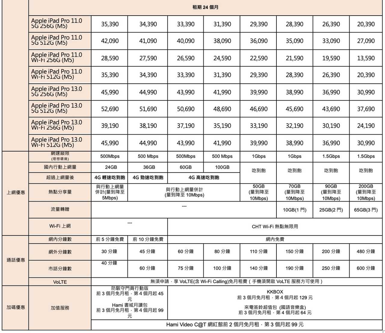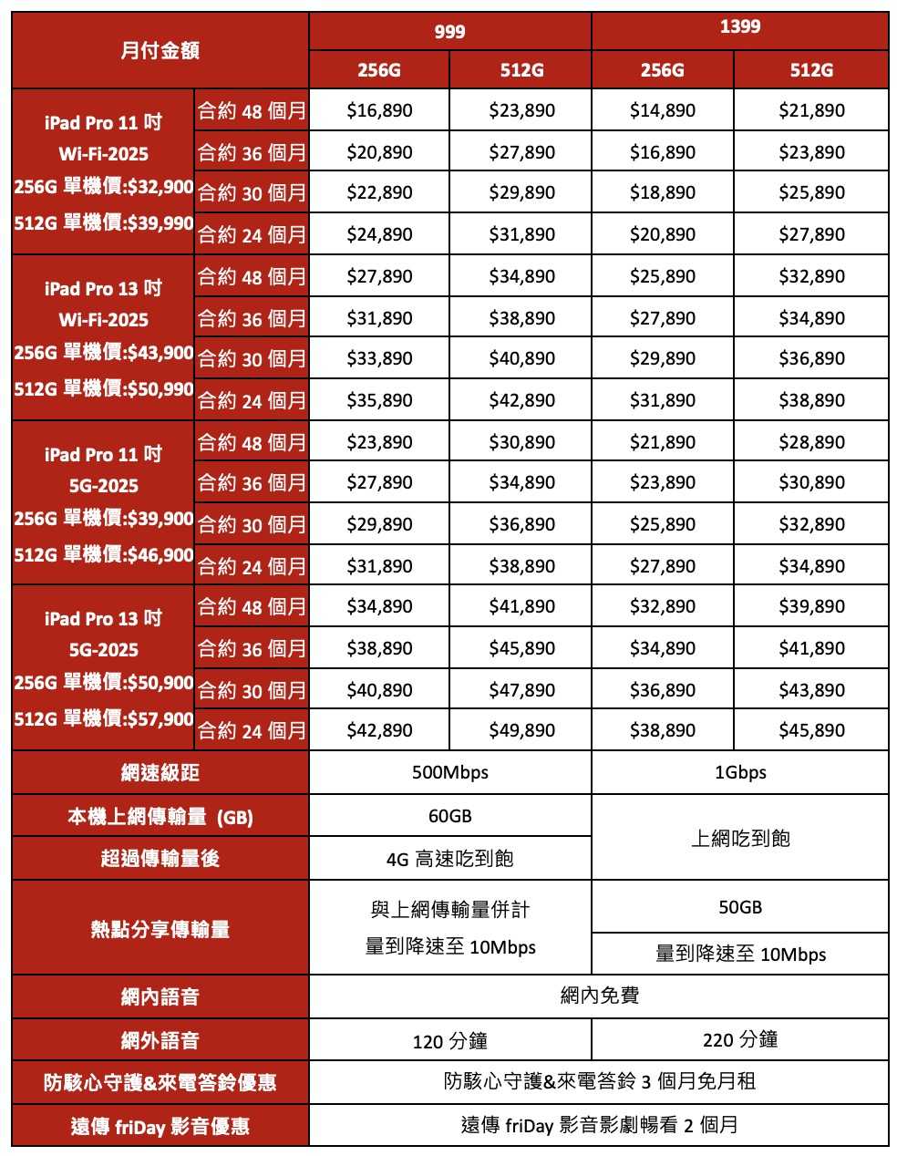 消費者若在 2026 年 1 月底前購買 iPhone 17 並申辦指定資費,將獲得額外的 Apple 購物金用於折抵 iPad Pro,透過「以機帶機」的策略鞏固高資費的 VIP 客戶,讓原本就有換手機需求的用戶,順勢將平板一併升級,適合預算充裕且追求「蘋果全家桶」的忠實用戶。