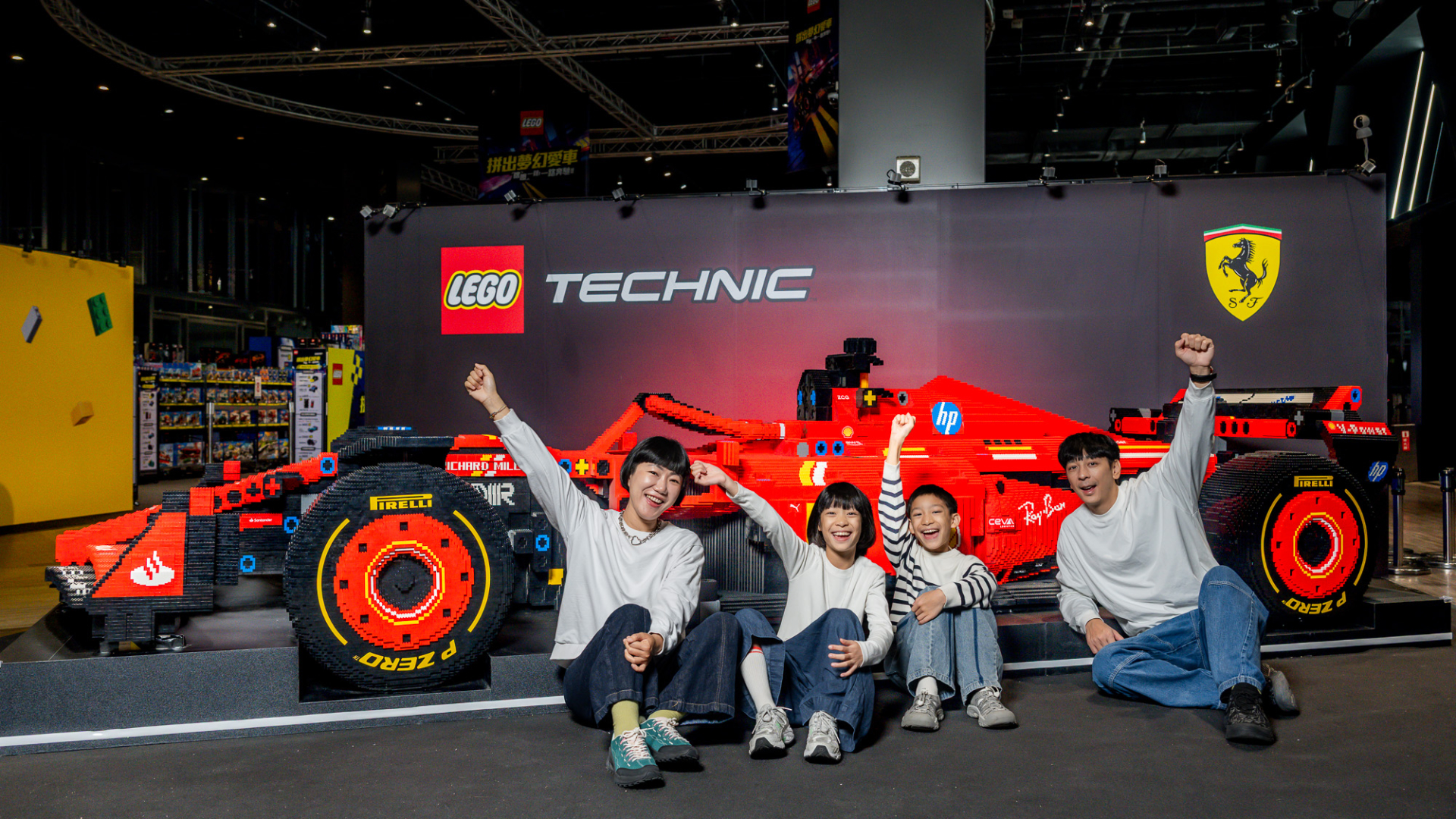 在全球 F1 賽車熱潮的帶動下,台灣樂高(LEGO)於 2026 年 3 月 26 日至 4 月 14 日期間,在桃園台茂購物中心 B2 微笑劇場舉辦「拼出夢幻愛車」主題活動;本次活動最具話題性的焦點,便是首度來台展出的 1:1 比例 Ferrari SF-24 法拉利賽車模型,這輛經典紅色賽車由超過二十萬顆樂高顆粒打造,耗時約 1,300 個小時拼砌與 336 小時設計,從流線型的車體、標誌性塗裝到前後尾翼、駕駛艙與輪胎等細節皆完整還原,讓車迷與大眾得以近距離欣賞真實賽車的工藝細節與震撼魅力。