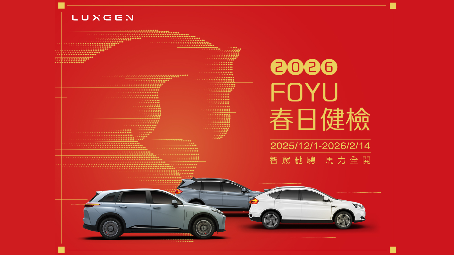 在鴻華入主傳聞不斷之際,LUXGEN 納智捷自 2025 年 12 月 1 日起至 2026 年 2 月 14 日展開「2026 LUXGEN FOYU 春日健檢」,透過一系列原廠服務協助車主在歲末年初做好行車準備;活動涵蓋全車安全檢查、季節性保養套餐、指定零件優惠與定保加購方案,並提供限量回饋禮與滿額贈品,鼓勵車主提前規劃回廠保養,確保車輛維持最佳狀態。