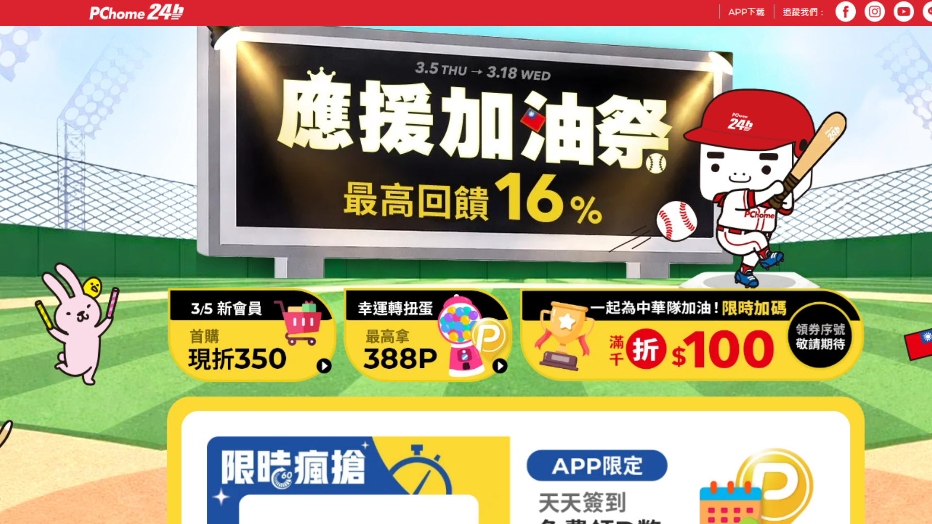WBC 點燃全台應援魂!PChome 24h 購物應援加油祭滿千折百,星展聯名卡最高回饋 14%