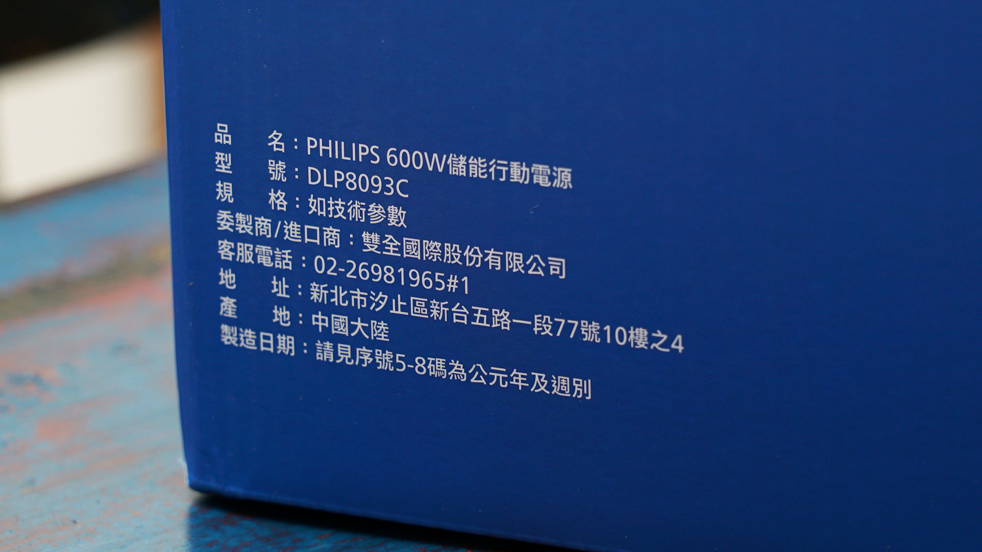 PHILIPS 600W 儲能行動電源型號為 DLP8093C,代理商為雙全國際。