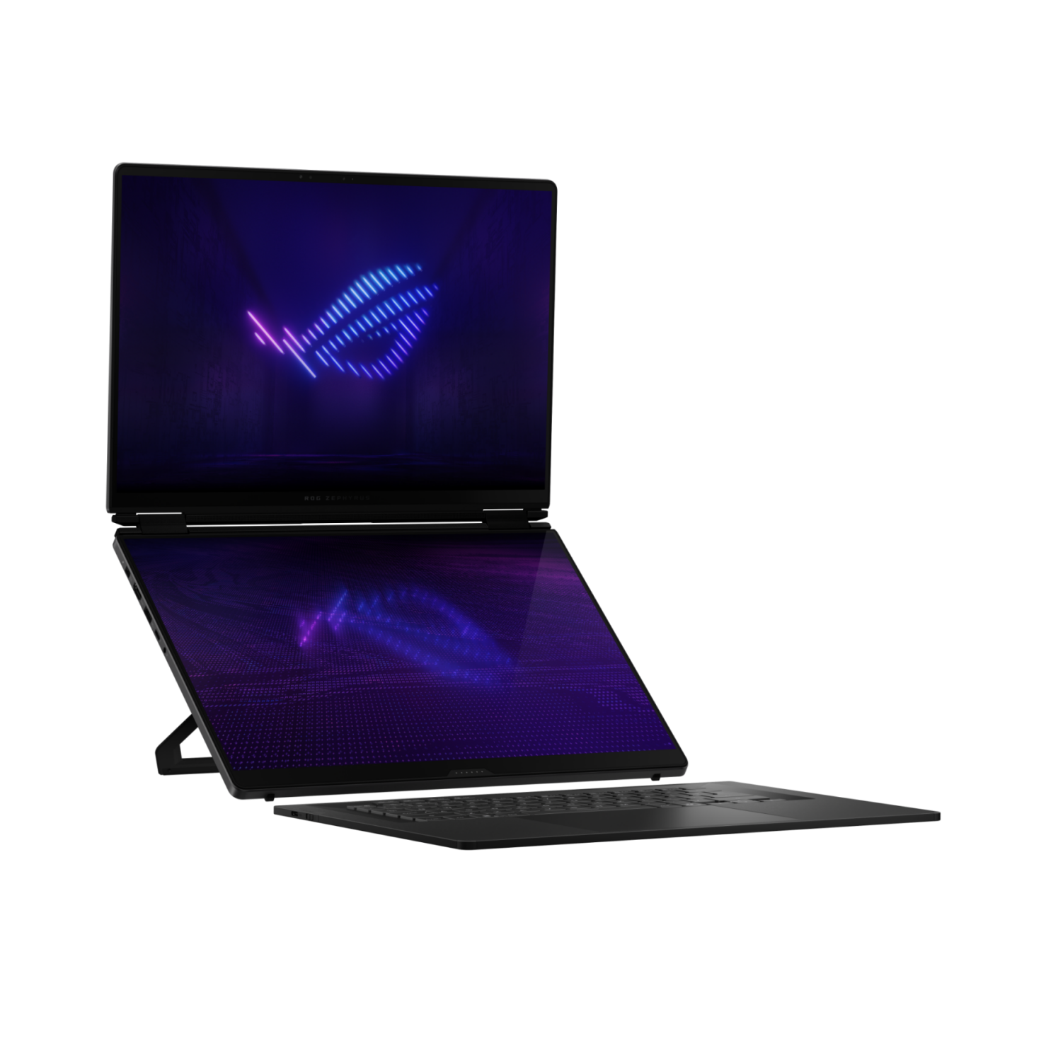 作為本次陣容的旗艦機型,ROG Zephyrus Duo 首創 16 吋 3K OLED 120Hz 雙觸控螢幕配置,透過額外的顯示範圍來提升多工作業與軟體操作的效率。在核心規格方面,該機型最高搭載 NVIDIA GeForce RTX 5090 顯示卡,支援最高 64GB 記憶體與 2TB PCIe 5.0 NVMe M.2 Performance 固態硬碟,提供頂級的運算效能;機身外觀採用 CNC 銑削工藝製造,並配置 ROG Slash 燈效與磁吸式鍵盤,兼具科技感與實用性。
