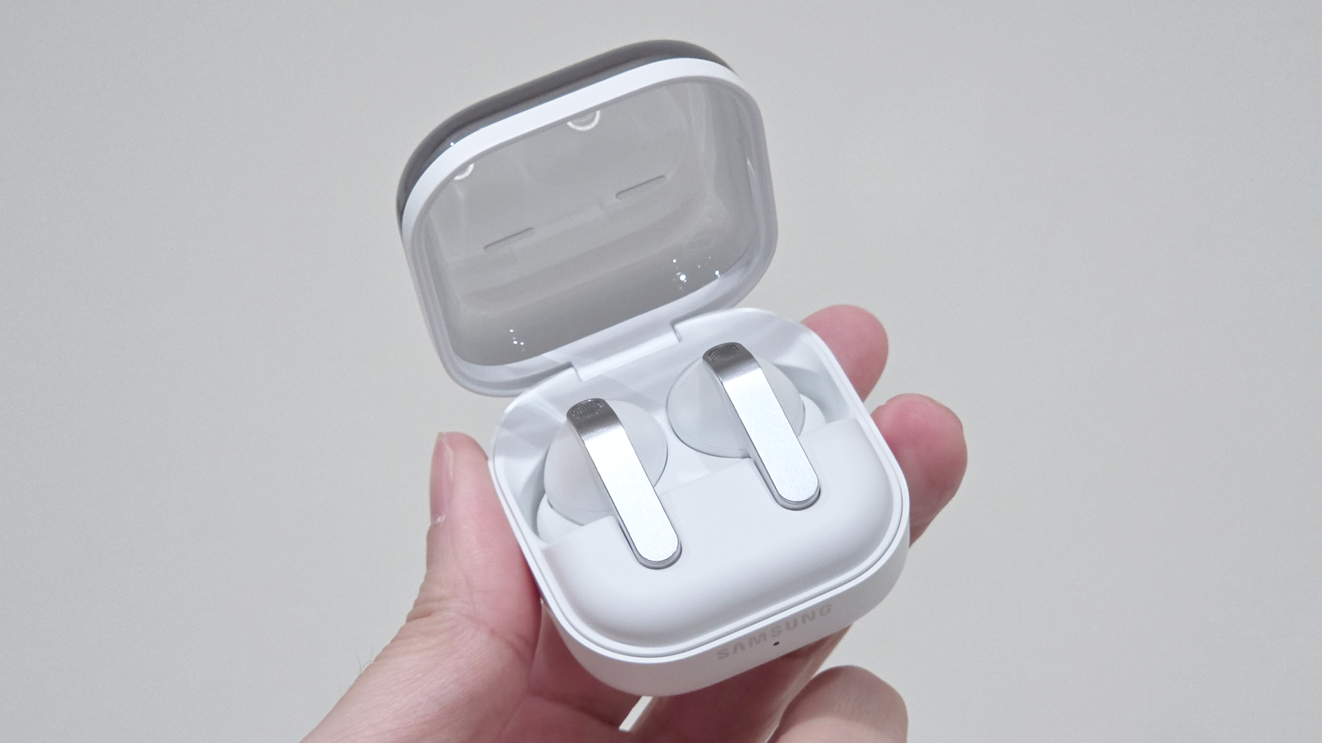 配色上除了常規的曜石黑與極光白,還推出了三星商城限定的粉霧金,而這次入手的是簡約的極光白配色;尺寸維持在 51 x 51 x 28.3mm 的充電盒,也兼顧了日常攜帶的便利與美感。