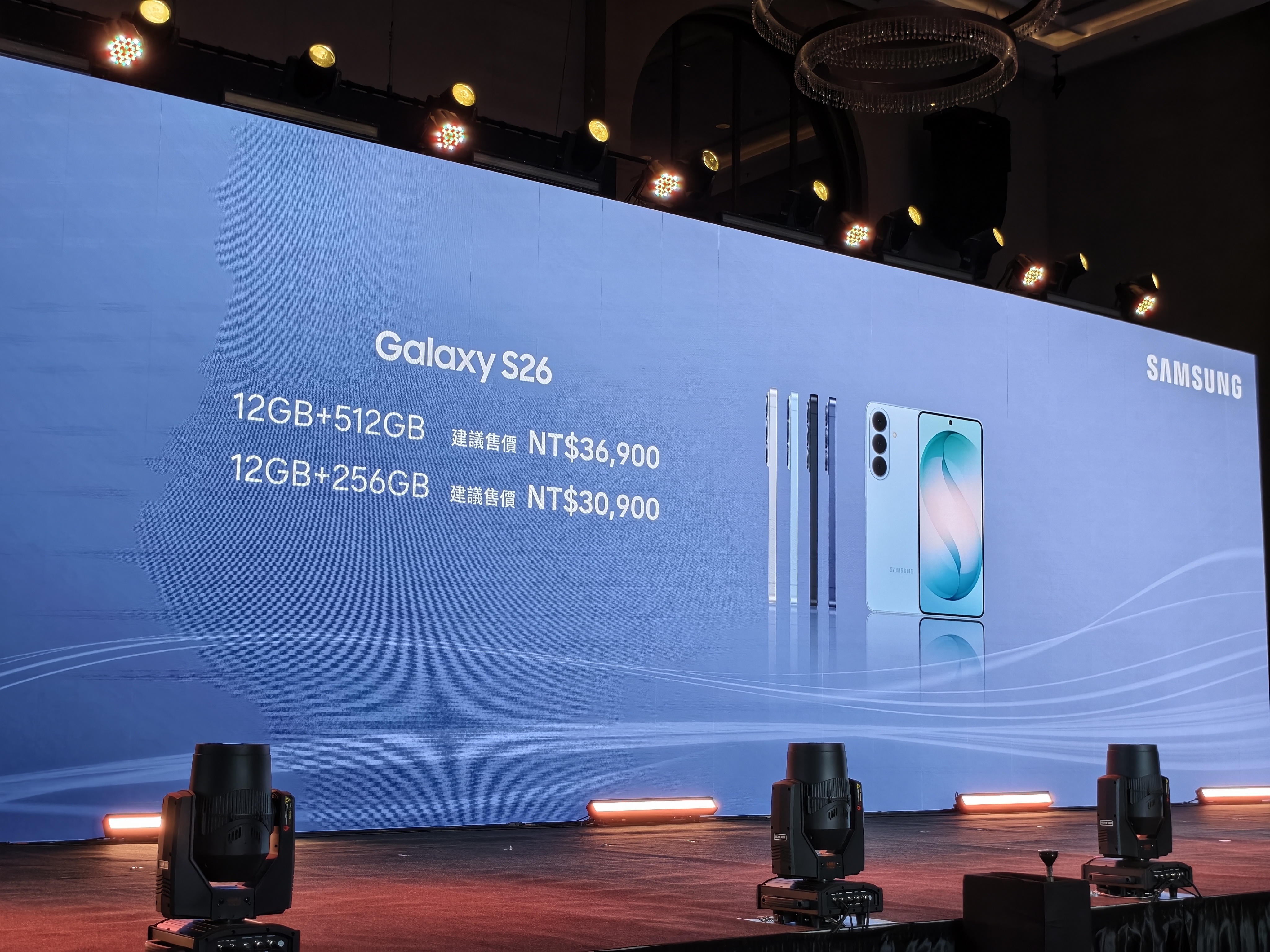 Samsung Galaxy S26 旗艦系列共分為三款機型,皆提供多樣化的顏色選擇;最高階的 Galaxy S26 Ultra 提供漫遊紫、漫遊黑、漫遊藍與漫遊白等一般色系,以及三星商城限定的漫遊金與漫遊銀,建議售價從 256GB 版本的 44,900 元、512GB 版本的 50,900 元,至最高 1TB 版本的 59,900 元不等,Galaxy S26+ 則有 256GB 與 512GB 兩種版本,售價分別為 37,900 與 43,900 元,入門的 Galaxy S26 定價為 30,900 元起,最高容量為 512GB 版本的 36,900 元;穿戴裝置方面,Galaxy Buds4 Pro 共有曜石黑、極光白與商城限定粉霧金三色,售價為 7,490 元,Galaxy Buds4 則提供曜石黑與極光白,售價為 5,190 元。