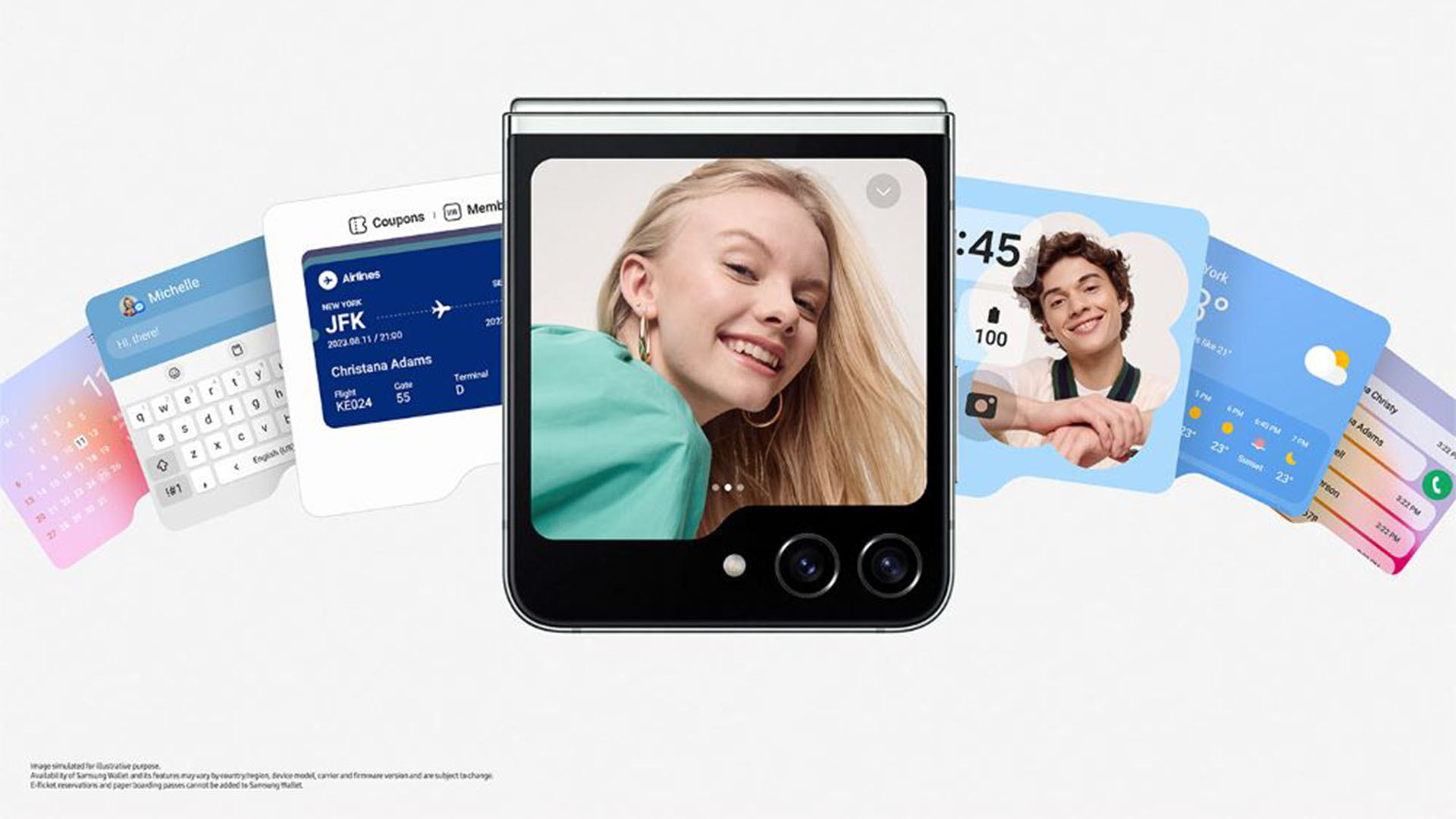 Samsung Galaxy Z Flip5 推出多款色系選擇,包括薄荷綠(Mint)、灰(Graphite)、白(Cream)和紫(Lavender),另推出一系列配件,包括透明保護殼、純素皮革保護殼、主題式感應保護殼,以及輕巧便攜的矽膠薄型保護殼(附指環扣)。