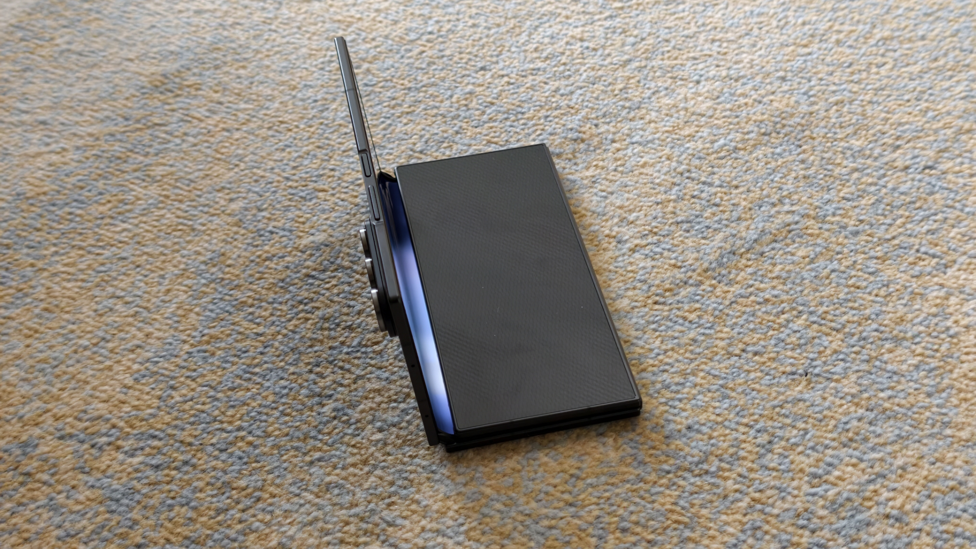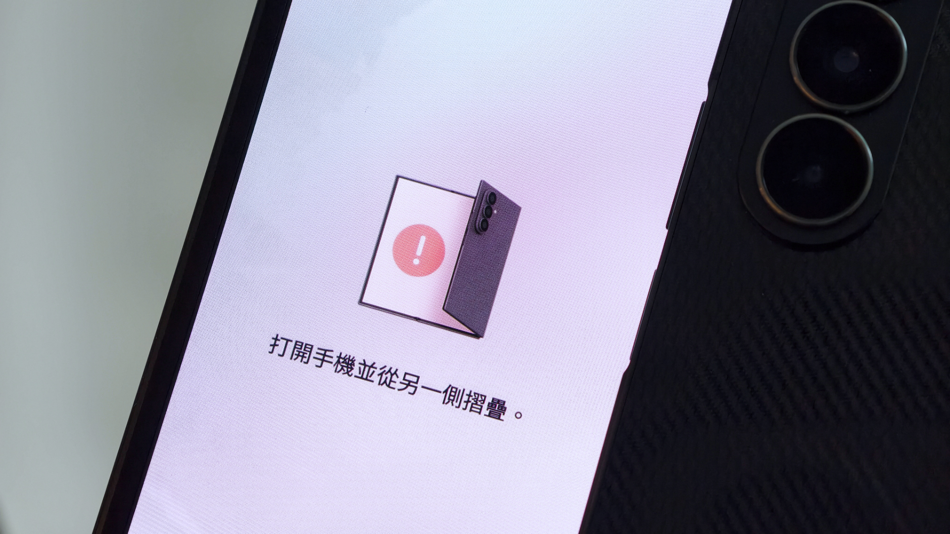 跟「友商」的摺疊設計不同,Samsung Galaxy Z TriFold 採用的是類似「G」型的摺疊設計,雖然只有摺疊與攤開兩種型態,沒有介於兩者之間的「中間尺寸」型態,但也因為這樣,這款手機在摺疊時可以完整保護那貴鬆鬆的內頁螢幕,個人是覺得還不賴;要注意的是,Samsung Galaxy Z TriFold 只有一個方向可以摺疊,摺錯方向手機會震動並在螢幕上提醒,只要別太暴力,不用擔心弄壞螢幕。