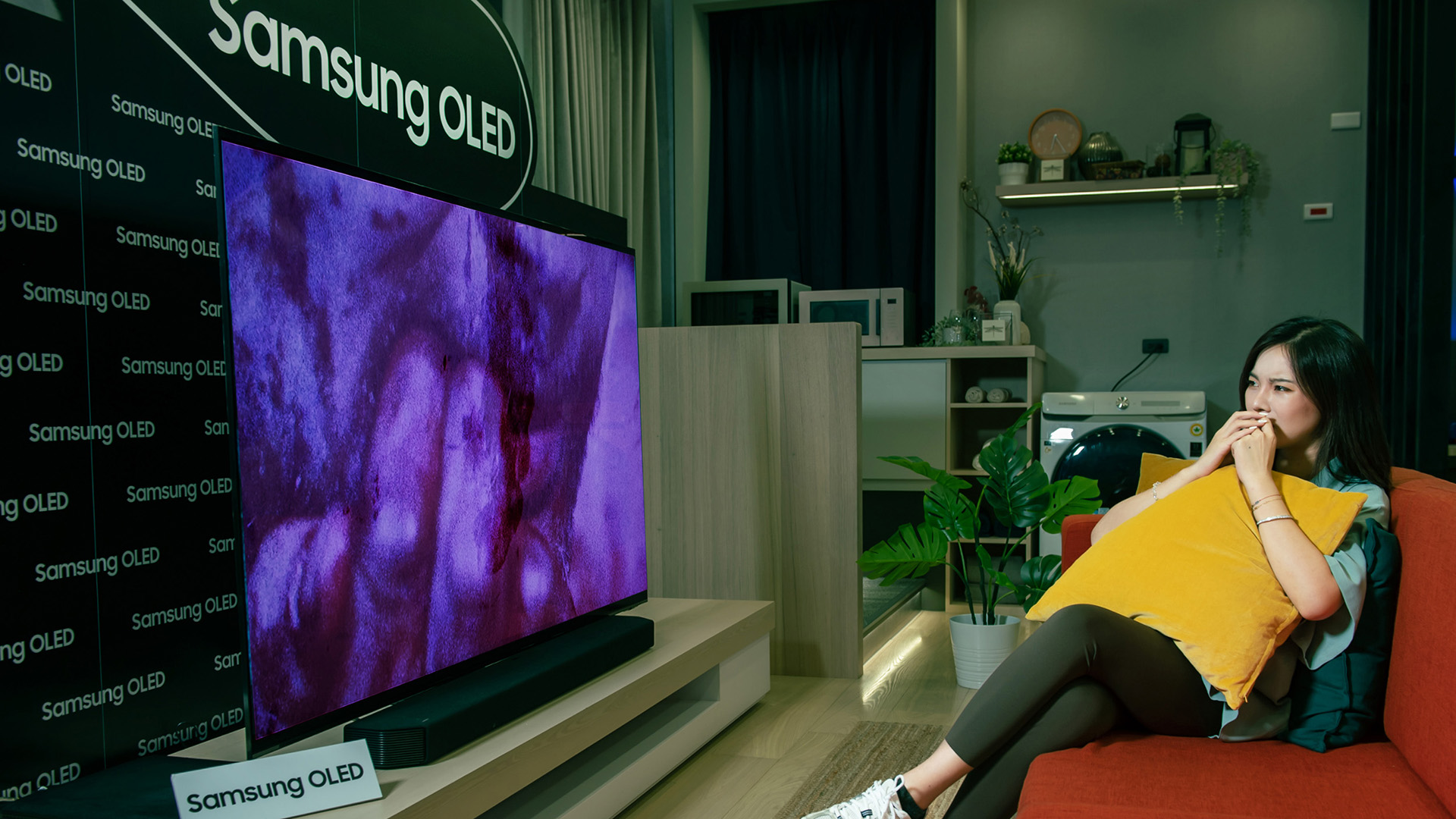 YouTuber 奎丁也受邀體驗 Samsung OLED 電視的視覺震撼,表示不論是觀看恐怖電影、玩驚悚遊戲,透過 OLED 電視的絕佳對比、畫質與真實色彩,不僅能感受如臨實境的效果外,栩栩如生的沉浸式體驗所帶來的驚悚感受更令人又愛又怕!而從 OLED 電視看到頻道中的自己也清晰地彷彿在照鏡子一般。