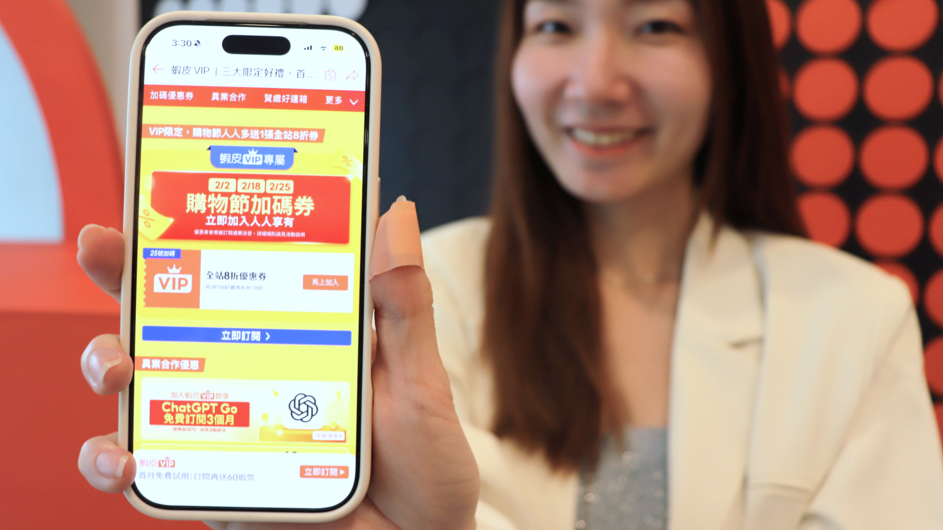 蝦皮購物繼 2026 年 1 月推出「蝦皮 VIP」訂閱制後,再度於 2 月 25 日迎來重大升級;本次升級不僅保留了站內廣受好評的強勁免運與專屬優惠,更透過戰略合作將會員權益向外延伸至全方位的生活領域;其中最具話題性的亮點,便是首度跨界結盟 AI 工具,現在只要訂閱「蝦皮 VIP」,即可免費獲得 3 個月的 ChatGPT Go 訂閱資格,讓用戶在享受低門檻免運與高額折扣的同時,也能運用先進 AI 工具大幅提升日常資訊處理效率,充分展現蝦皮致力於打造便利數位生活的承諾。