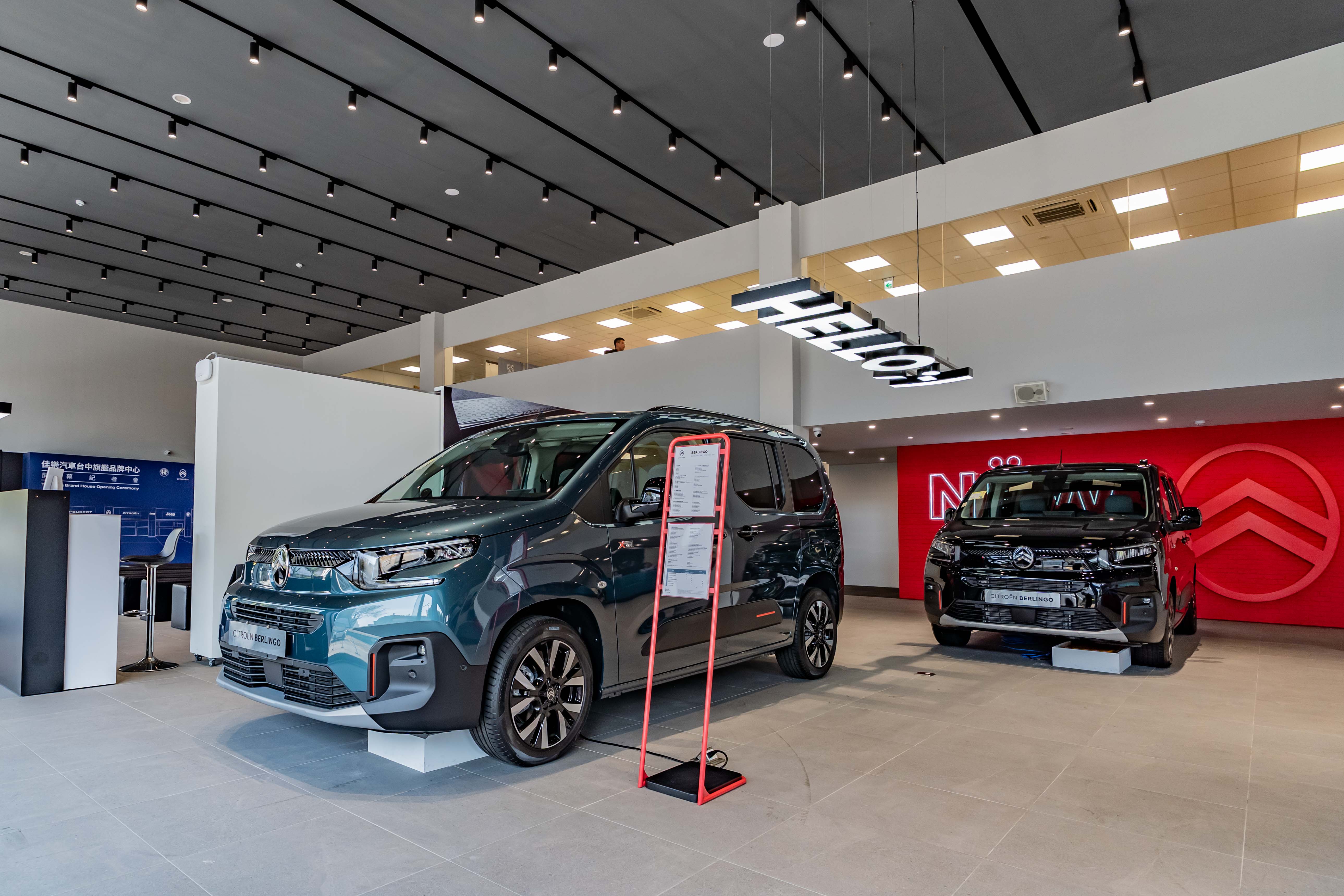 建築外觀採用寬闊的水平量體設計,臨路面寬達 65 米,挑高的黑色主體建築結合 Stellantis 集團代表色系,展現出高度一致的國際精品質感;四座垂直立面招牌一字排開,分別呈現 Alfa Romeo、CITROËN、Jeep、PEUGEOT 的專屬識別,在視覺上形成強烈氣勢,同時精準區隔出各品牌獨立的格調。