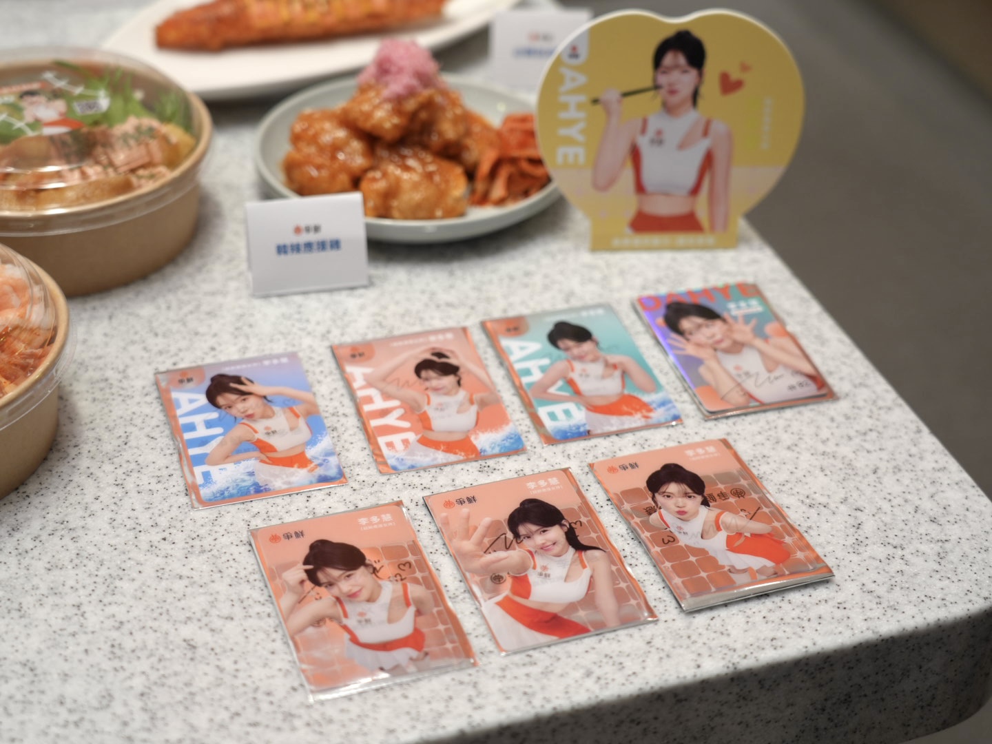 針對李多慧的粉絲,爭鮮也規劃了限量周邊與見面會抽獎活動;消費者只要點購「甜心馬卡龍炙鮭」、「韓辣和牛燒」或「開心果泡芙」,即可獲得一張隨機發放的限量「真鮮女神卡」;若購買爭鮮 gogo 的九宮格餐盒,則可一次獲得兩張。