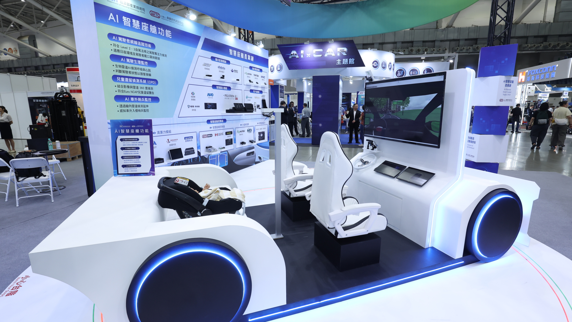 在智慧車電應用上,由車輛中心研發的 AI 全方位智慧座艙展現了車輛主動防護的未來樣貌;該系統將汽車從單純的交通工具升級為具備判斷能力的移動空間,並擁有多項前瞻感知技術,駕駛者視線追蹤技術即使在日夜光線交替,或是駕駛佩戴口罩、眼鏡甚至中東服飾遮蔽的情況下,依然能維持高達 99% 的辨識率,AI 非接觸式生理監控系統則可隨時偵測駕駛的呼吸與心跳狀態,防範因突發狀況導致的失控意外。