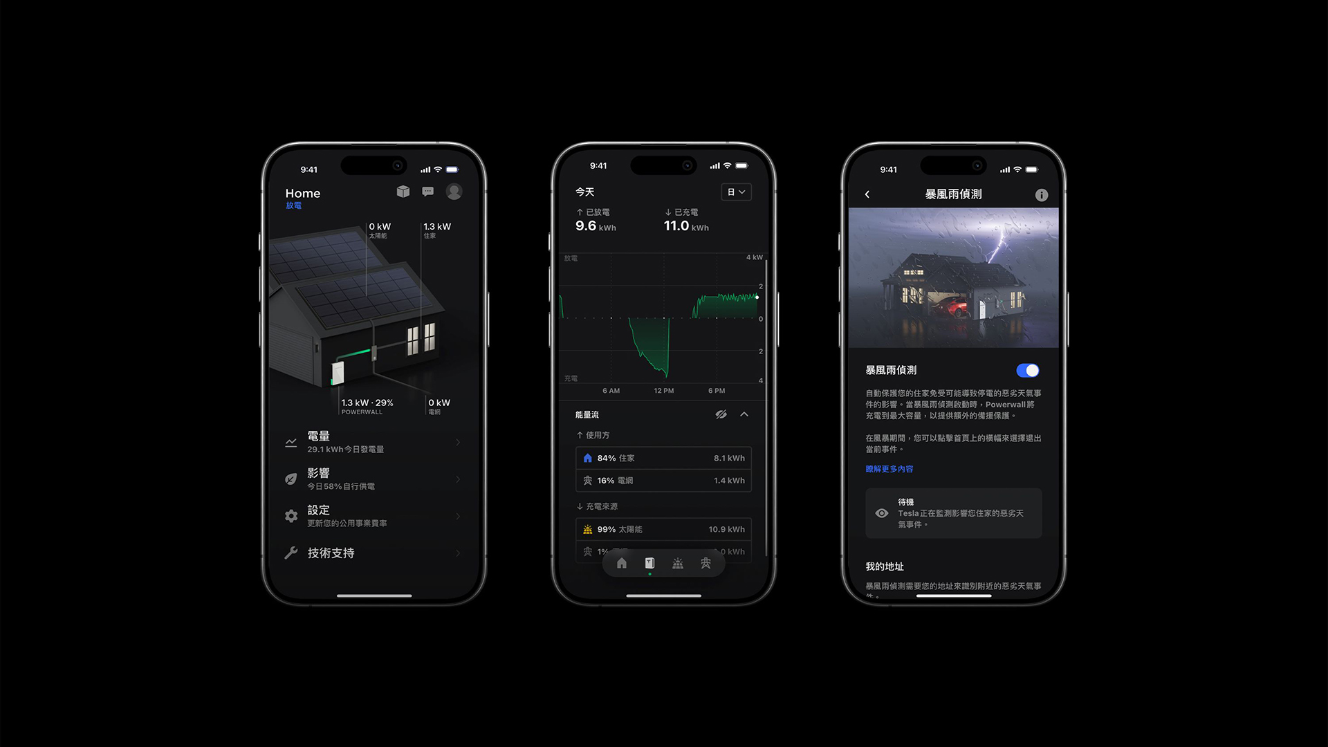 Powerwall 可與太陽能發電系統整合,在電網供電中斷或發生颱風、地震以致於停電時提供備援電力保障;透過 Tesla App 行動應用程式,使用者可以即時監控 Powerwall 和太陽能供電,自訂偏好設定以最佳化電力獨立性、斷電防護並節省開銷。