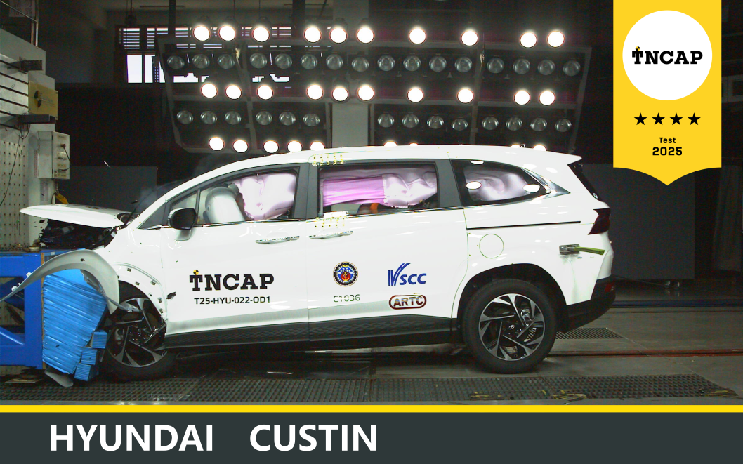 另一方面,HYUNDAI 的主力 MPV 車款 Custin,在成人保護與兒童保護分別獲得 74% 及 75% 的成績,表現中規中矩,依據星級評等平衡標準規定,同樣獲得四顆星的安全評價。