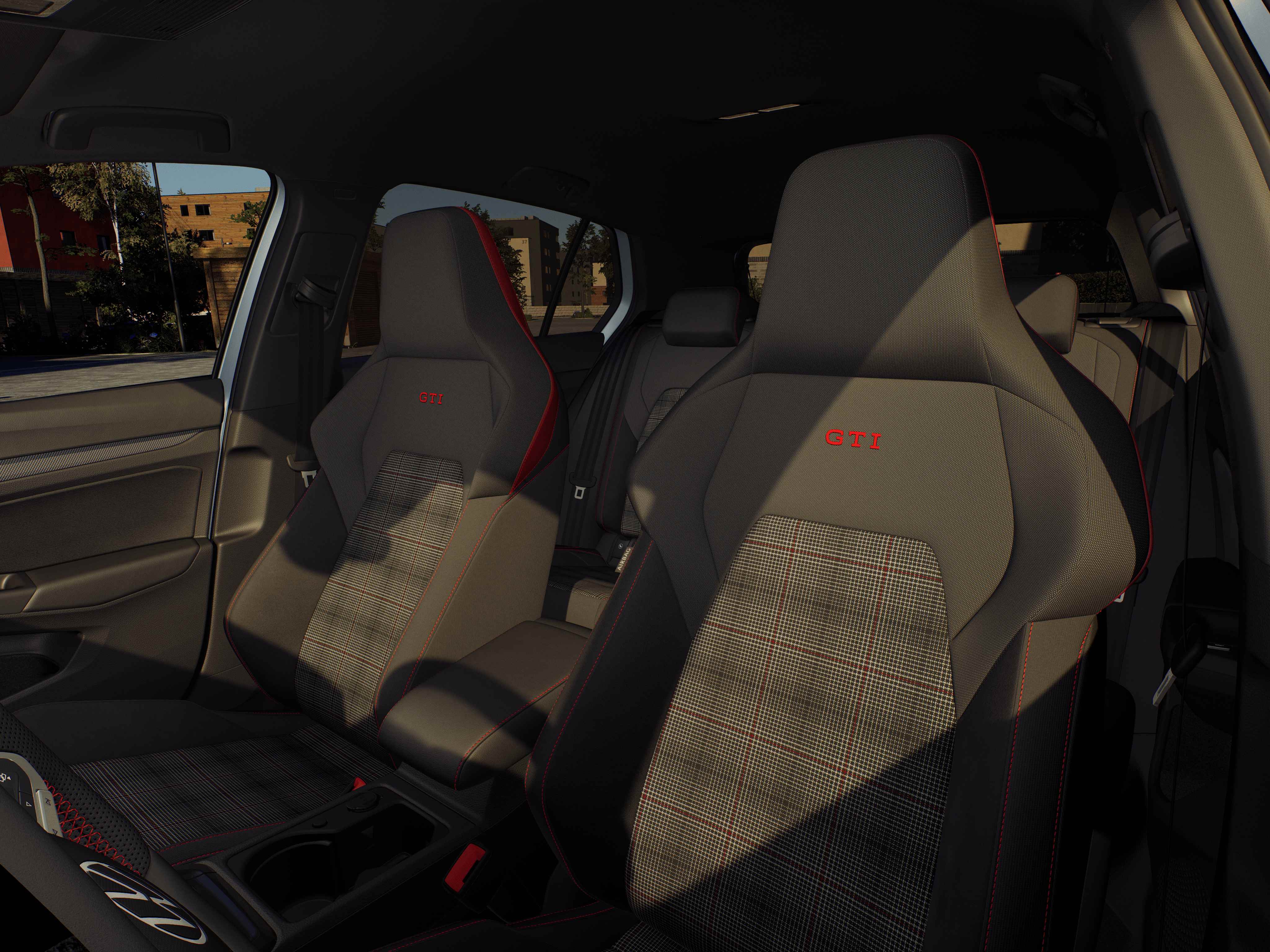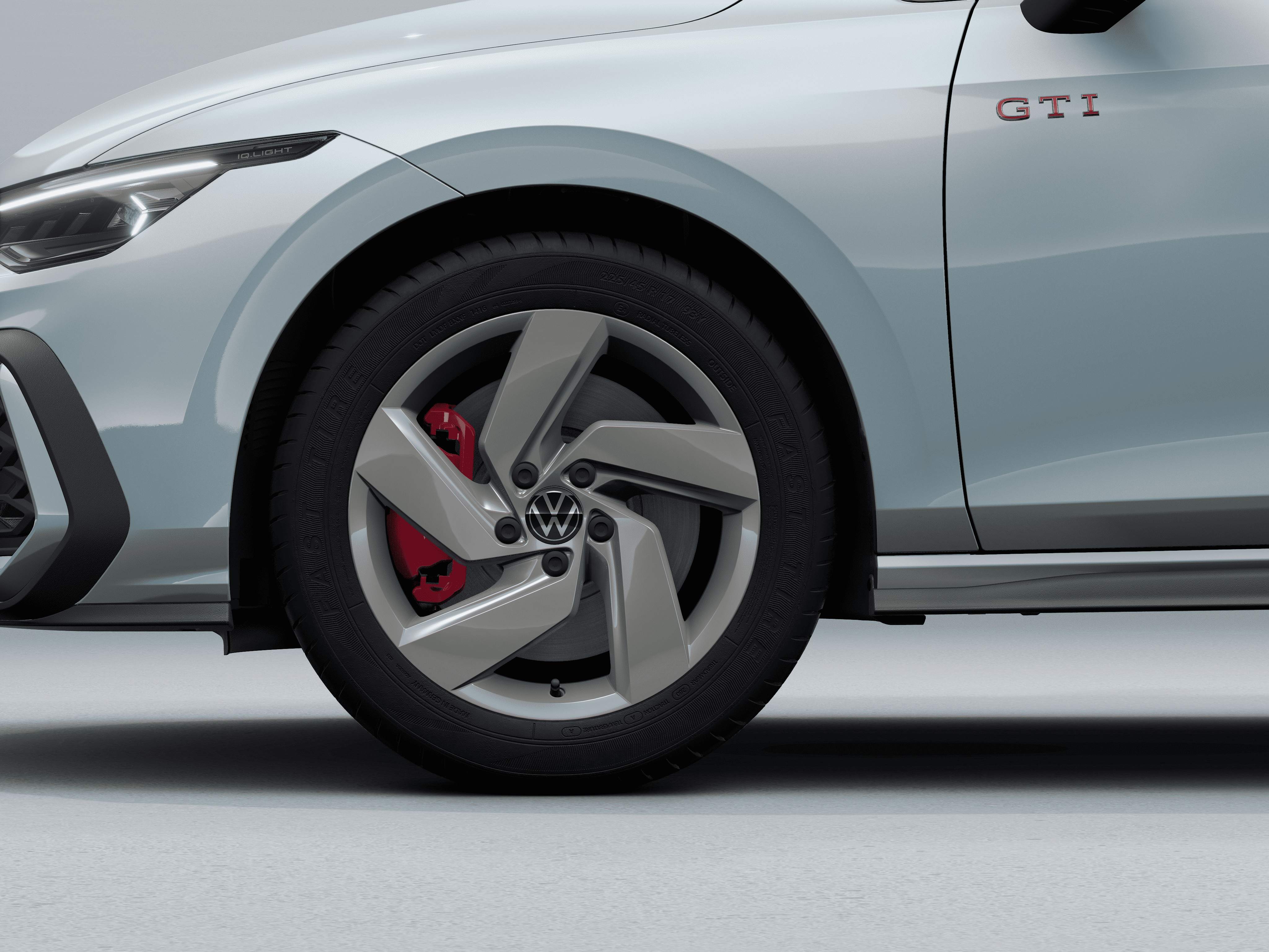 照明科技方面,車頭配置 IQ.LIGHT HD Matrix 矩陣式頭燈(含 DLA 動態頭燈智慧切換)與水箱護罩連貫式 LED 定位燈,車尾則採用 3D 幾何序列式動態尾燈,搭配 GTI 專屬的 X 型 LED 前霧燈,大幅提升夜間辨識度。足下配置則選用 17 吋 Richmond 鋁圈(輪胎尺寸 225/45 R17),輔以紅色煞車卡鉗與雙出排氣尾管,靜止時亦難掩其蓄勢待發的性能姿態。